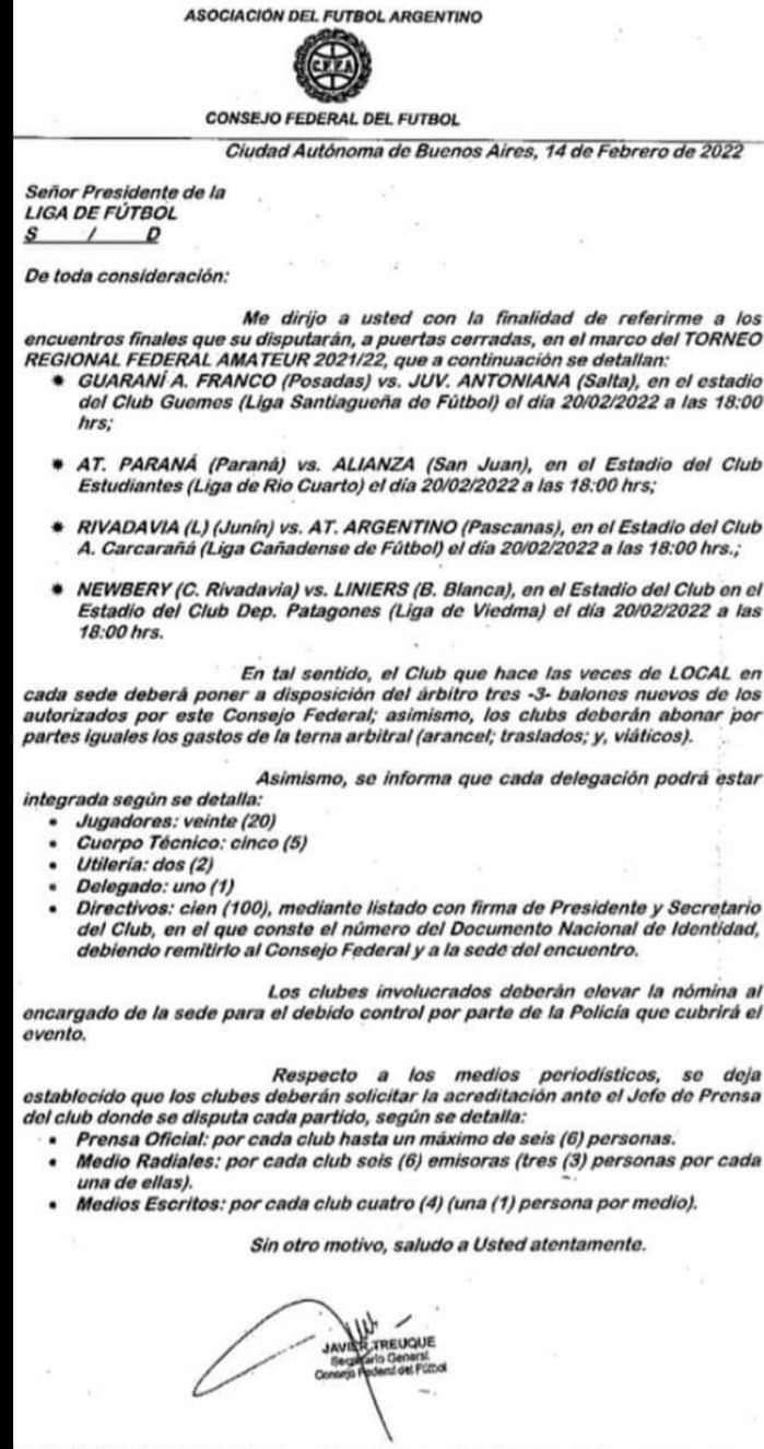 Se enviaron las notas oficiales a las ligas donde se van a realizar los encuentros y la posterior comunicación a los clubes. Es decisión tomada: las finales del Torneo Regional se disputarán sin público. Los motivos son pura y exclusivamente de seguridad en cada una de las sedes.