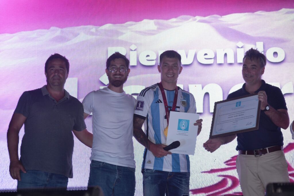 Con el Mundial de Qatar 2022 en sus hombros y la medalla colgada de su cuello, el zaguero de la Selección Argentina fue homenajeado en su ciudad natal.