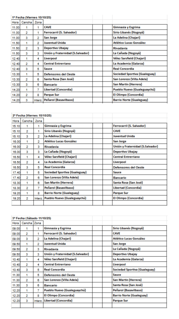 Zona 3: Deportivo Ubajay – Rivadavia (CdU) – Unión y Fraternidad (San Salvador) – La Cañada (Nogoyá)