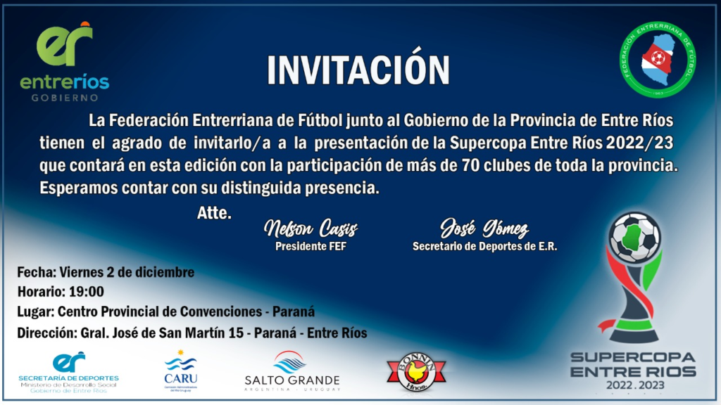 El lanzamiento, que contará con la presencia de las máximas autoridades de la Federación Entrerriana de Fútbol y del Gobierno de Entre Ríos, se realizará en el Centro Provincial de Convenciones de la capital provincial desde las 19 hs.