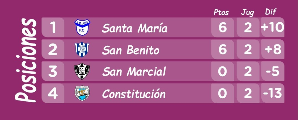 Con sendas victorias, San Benito y Santa María de oro parecen polarizar la lucha por la única plaza clasificatoria a la Copa federal organizada por el Consejo Federal del Fútbol Argentino.