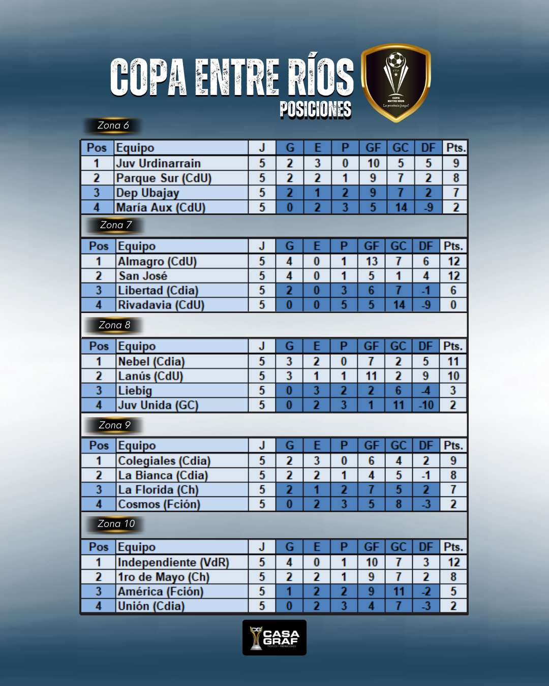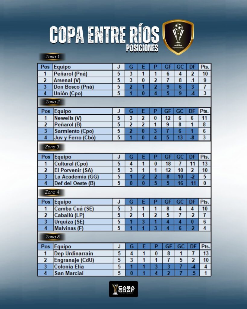 De esta forma, Newell’s de Victoria, Cultural de Crespo, Camba Cuá de Santa Elena, Deportivo Urdinarrain, Social y Deportivo San José, Almagro de Concepción del Uruguay e Independiente de Villa del Rosario estarán en la próxima instancia de la Copa Entre Ríos.