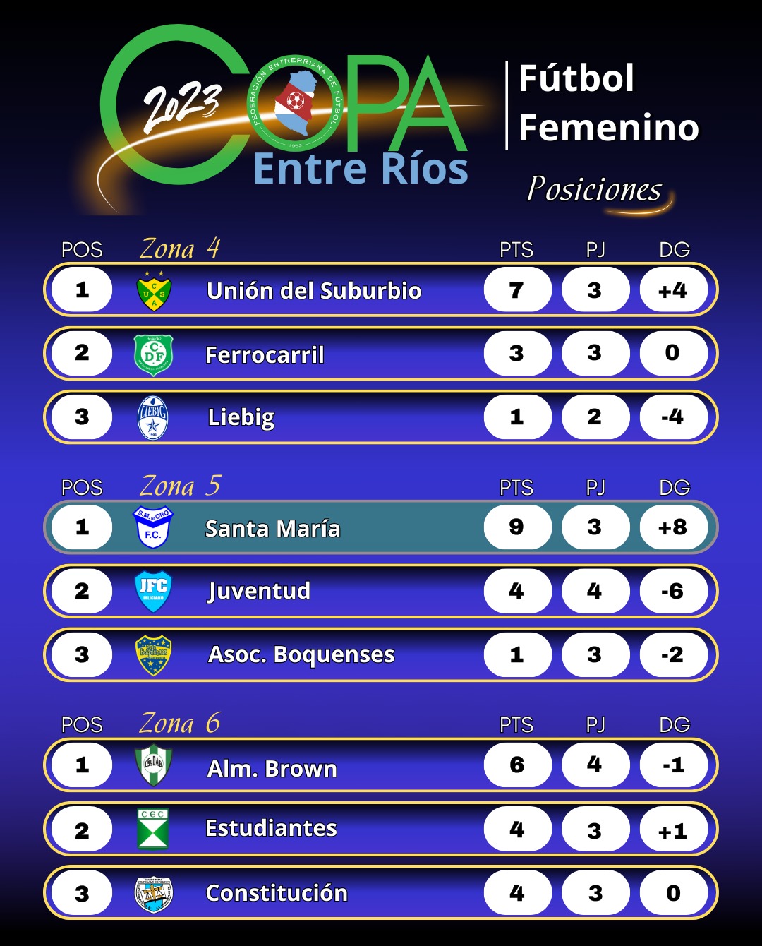 Por su parte, las zonas 3, 4 y 6 se definirán recién el próximo fin de semana, como así también aquellos equipos que ingresen a la etapa de play offs como mejores segundos.