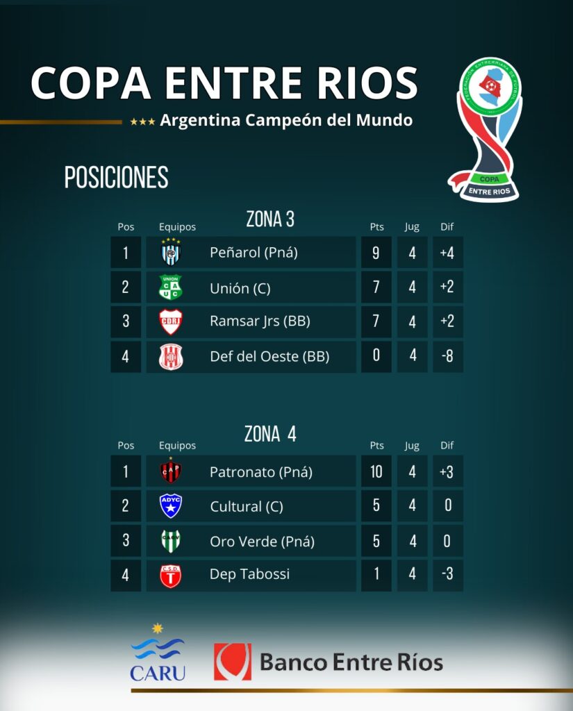 Durante los últimos días se disputó la totalidad de la cuarta fecha correspondiente a la fase de grupos de la Copa Entre Ríos “Argentina Campeón del Mundo”.