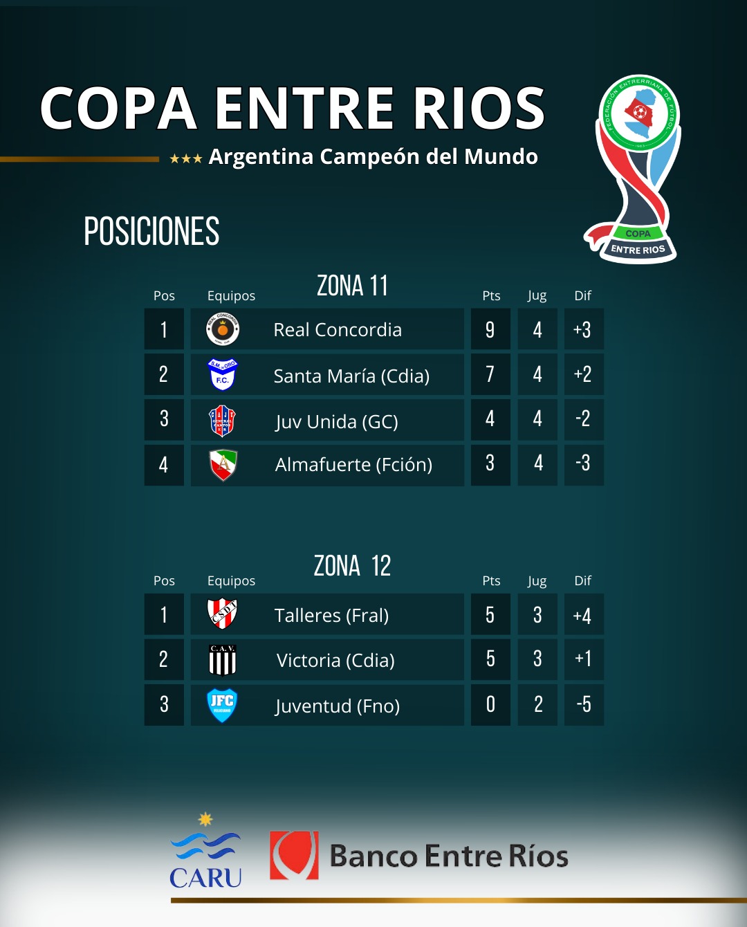 Con los resultados registrados, tres equipos ya se aseguraron el pase a la próxima instancia de la competencia. Central Entrerriano de Gualeguaychú, Juventud Urdinarrain y Gimnasia de Concepción del Uruguay ganaron sus respectivos juegos y sellaron la clasificación.
